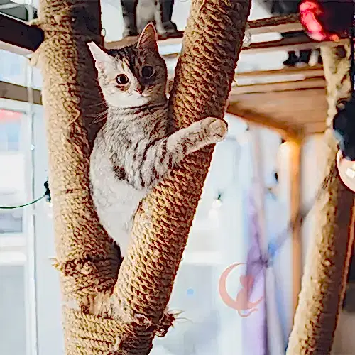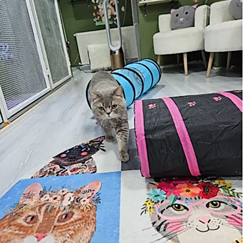 Kedilerin doğal davranışlarını sürdürebilmesi için özel oyun alanlarımız ve tırmalama tahtalarımız mevcuttur. Oyun zamanlarıyla keyifli vakit geçirmeleri sağlanır.